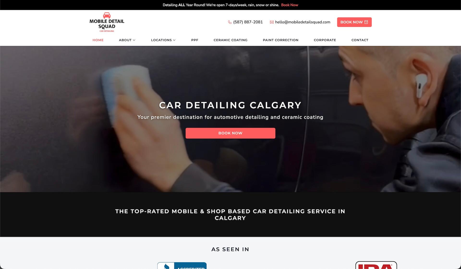Mobile Detail Squad operates a professional automotive restoration network serving the Calgary and Red Deer regions. ONMARS manages their digital presence and provides ongoing technical support for their high-performance web platform, ensuring optimal uptime and lead generation for their service offerings.